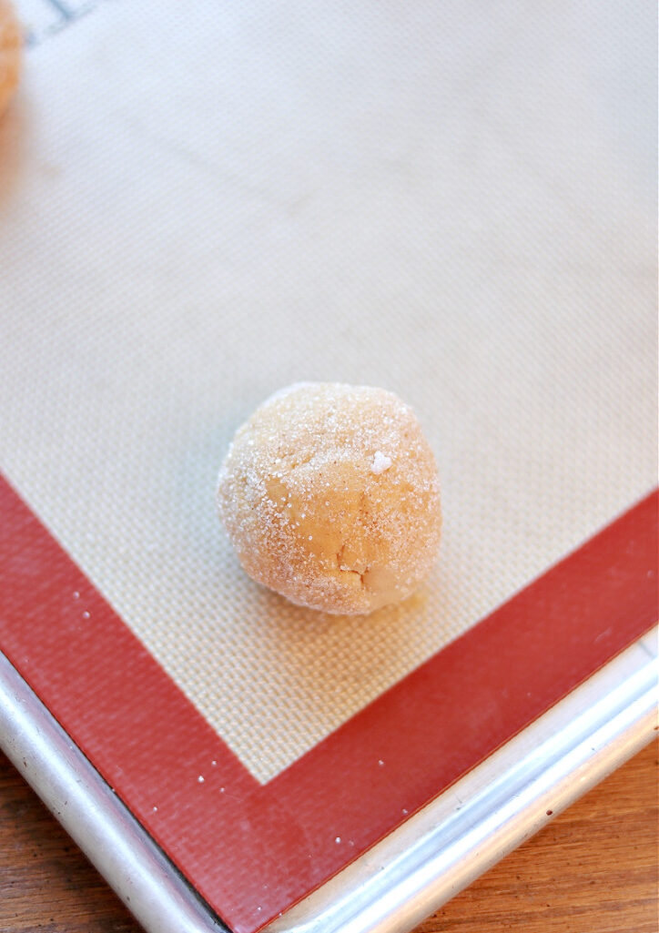 - Roll each of the filled cookies in the cinnamon and sugar mixture. Place 6 on a baking sheet and bake @350 degrees for 13 – 15 minutes.