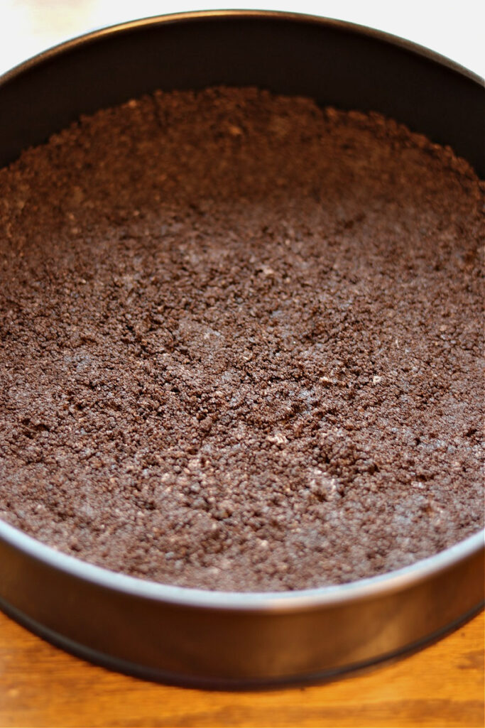 - Place the Oreo’s into a bowl or a food processor, and crush the cookies.